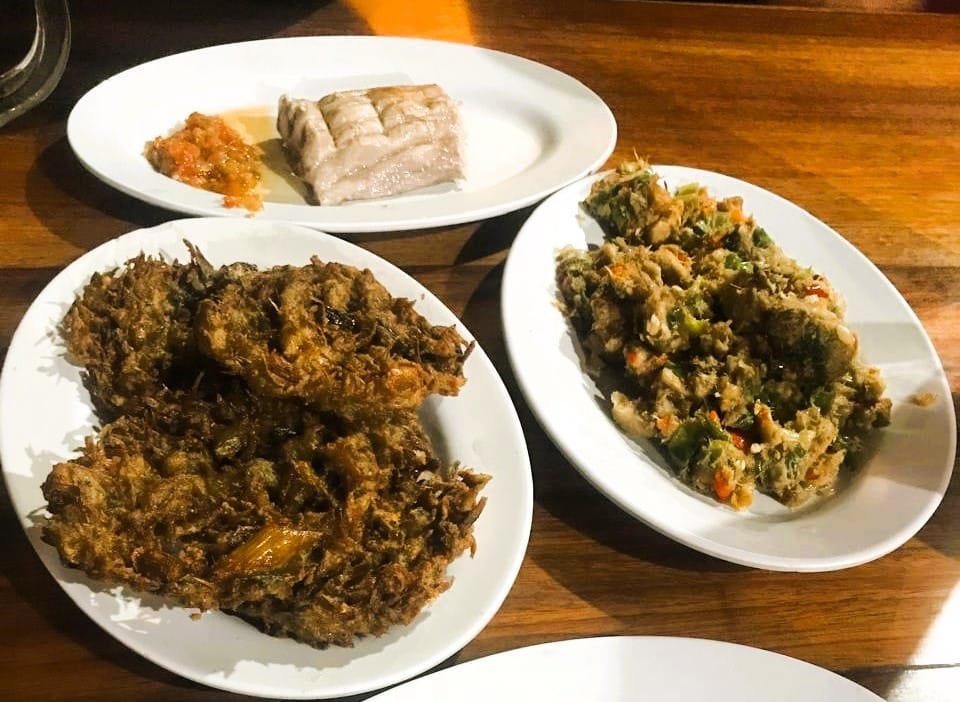 Sebagai kota yang bersentuhan dengan laut, ikan pasti jadi makanan andalan di Manado. Saya mencoba beberapa masakan ikan di RM Rajawali & Tuna House. Di sini, Kerapu punya nama lain yang lebih sangar: Goropa. Ada juga ikan Nike. Bentuknya kecil-kecil seperti teri nasi, tapi tidak asin. Konon, ikan ini hanya ada di Danau Tondano saja. Banyak yang membawa sebagai oleh-oleh setelah dibikin keripik.